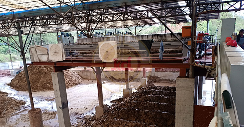現(xiàn)場使用機(jī)型:廂式高壓壓濾機(jī)XMYZD1500-400m2,數(shù)量:12臺