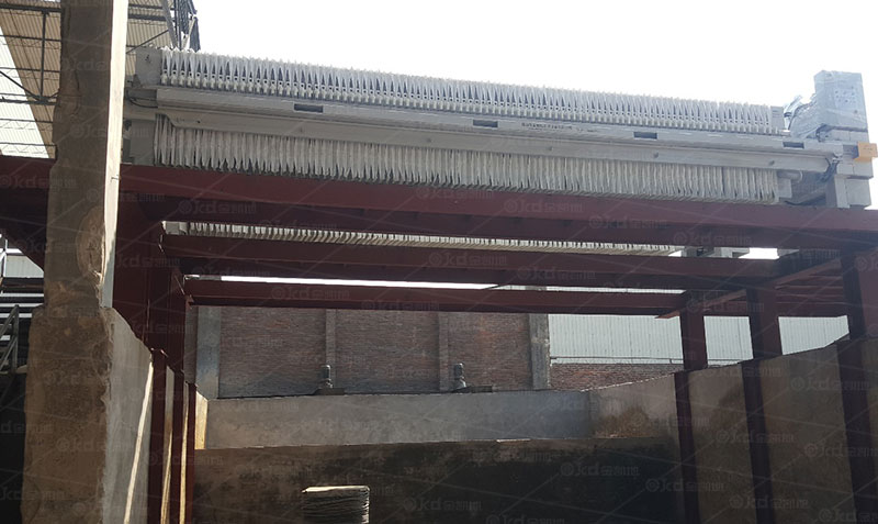 采用兩臺XMYZD1250-120pc 隔膜高壓壓濾機,對原料土、砂等按比例配置,化漿后攪拌均勻制成原漿,通過壓濾機進行壓濾脫水,壓濾后的泥餅可直接作為生產原料使用。