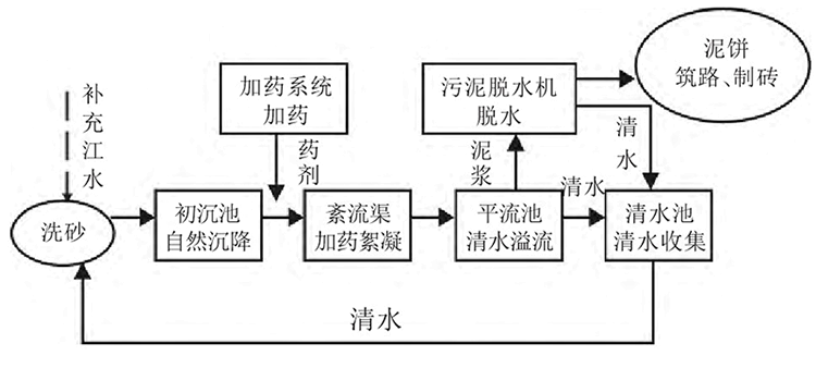 然而,由于機制砂工藝上采用洗砂一道程序,使得機制砂的廢水如果不經處理直接排放入河道就會污染河道,影響河道水質,影響河道景觀。為解決這一問題,優化機制砂工藝流程,采用廢水預處理加壓濾處理的模式對機制砂廢水進行處理。