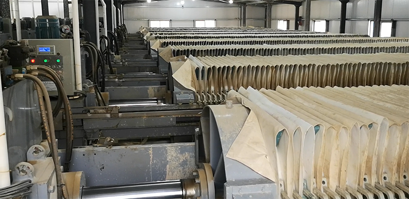 我們可以在污水污泥廂式壓濾機濾餅生成的那一段區域進行分段,針對分段進行洗滌,這里注意洗滌液較好使用清澈的洗滌液,洗滌液可以經過一個鋸齒的溢流堰,這樣比較均勻的把洗液噴灑在濾餅上面。如果濾餅一定要進行充分洗滌的時候,我們可以適當的增加洗滌的段數以及適當增加洗水的量,這樣才能得到比較好的洗滌效果。