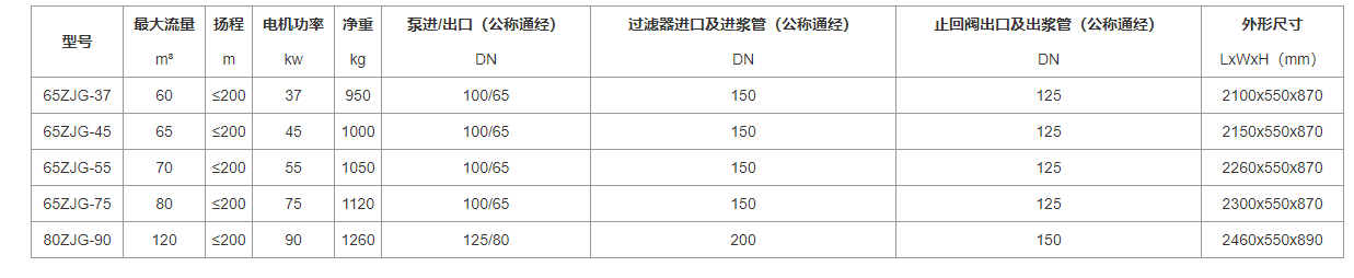 污泥壓濾機入料泵采用獨特的水力設計及葉輪安裝方式,確保了其性能曲線比一般雜質泵更陡,非常適合污泥壓濾機入料時應阻力的變化來實現大流量,低壓力喂料與小流量,高壓力過濾的目的。其特殊的水力性能恰好吻合污泥壓濾機由空腔到填滿再到濾干的漸進過程。喂料初期不用閥門控制流量過大引起的電機過載同時低壓力不會對濾板邊框產生沖擊,減輕了濾板邊框上的濾布的破損,也不會沖擊濾板造成震動,壓濾后期的小流量大壓力不易產生憋泵。尤其是在后期壓榨期時同泵在大壓力下其獨特的葉輪安裝方式及副葉輪的作用,保證軸封處的基本達到無泄漏。